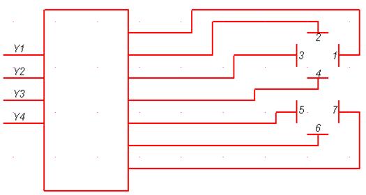 На вход схемы подаются различные комбинации двоичных сигналов X1 - X4. На индикатор предполагается выводить лишь отдельные цифры из множества шестнадцатеричных цифр. На выходе Y должна быть единица, если соединенный с этим выходом сегмент должен загореться при отображении цифр (для функциональной схемы).