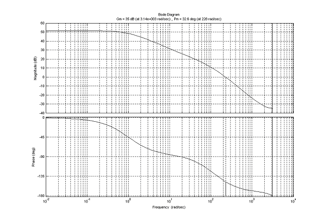 Используем пакет Matab для построения желаемой ФЧХ и определения запасов устойчивости.